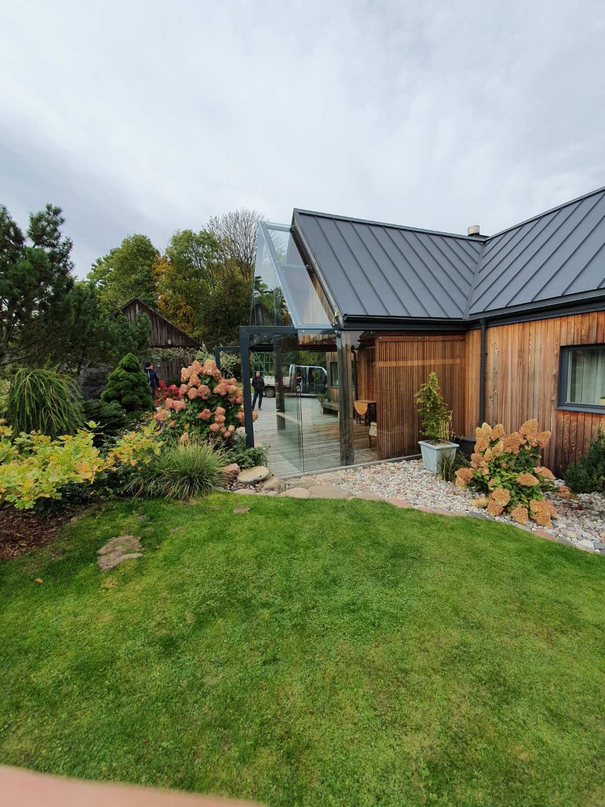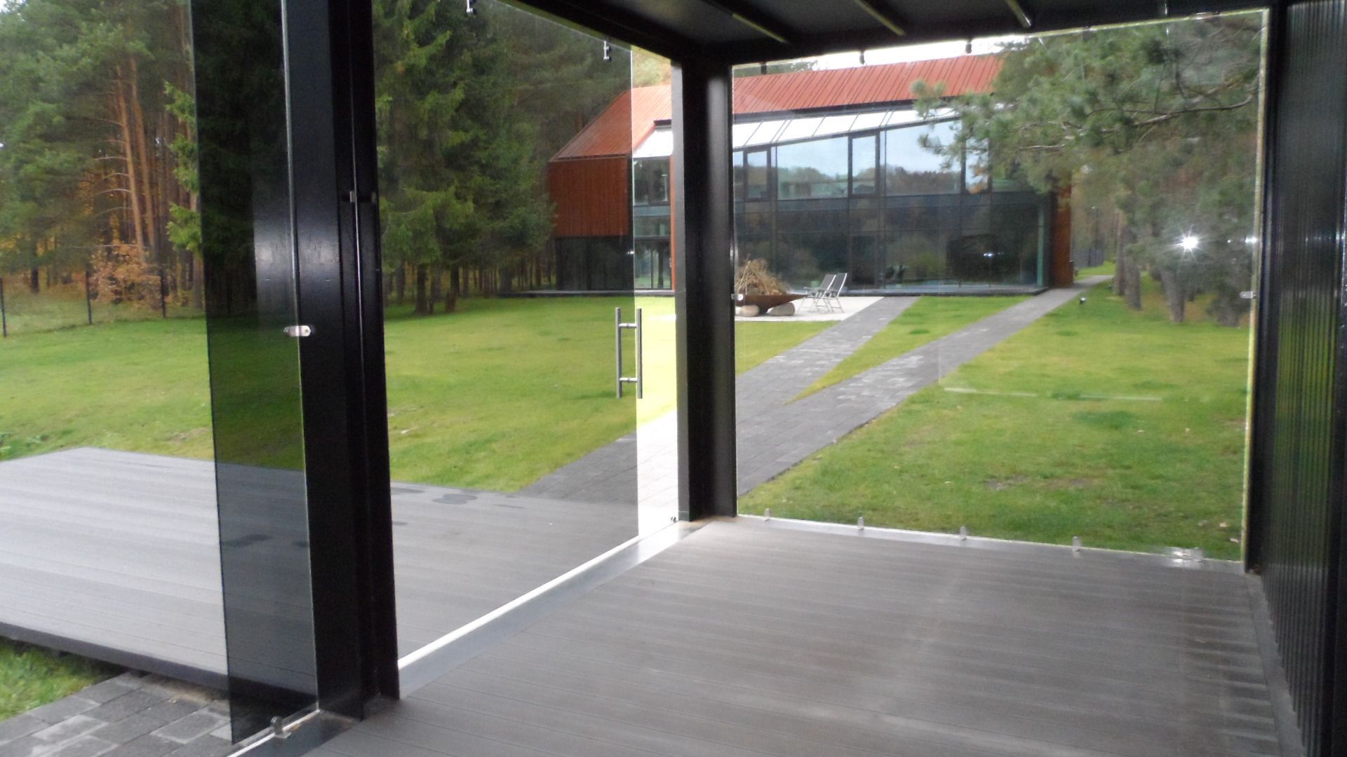 Stengiantis kuo labiau atverti terasą esant geram orui, tarp stacionarių stiklų montuojamos stumdomos durys.