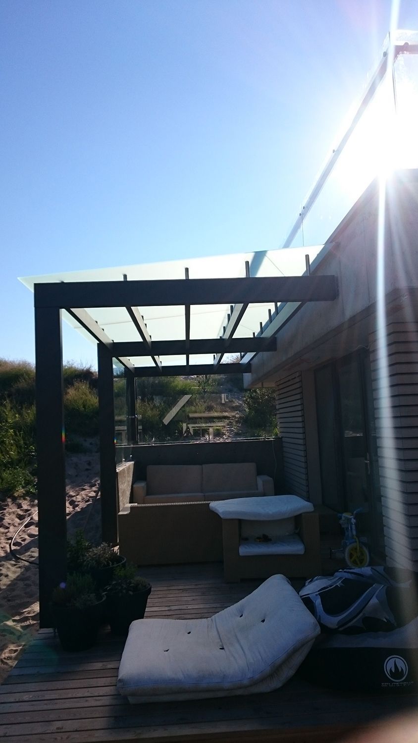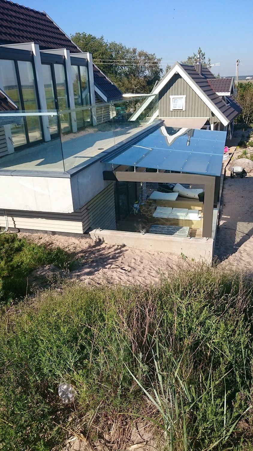 Terasų apstiklinimas grūdinto stiklo lakštais naudojamas siekiant apsaugoti terasą nuo vėjo ir lietaus. Tačiau jis neapsaugo nuo šilumos nuostolių.
