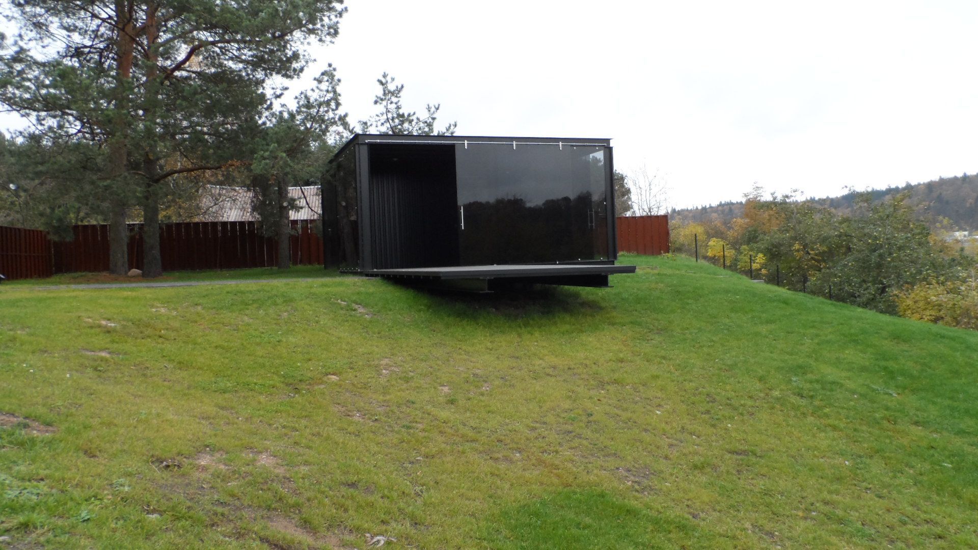 Siekiant sukurti privatesnę erdvę, panaudojamas tonuotas stiklas.